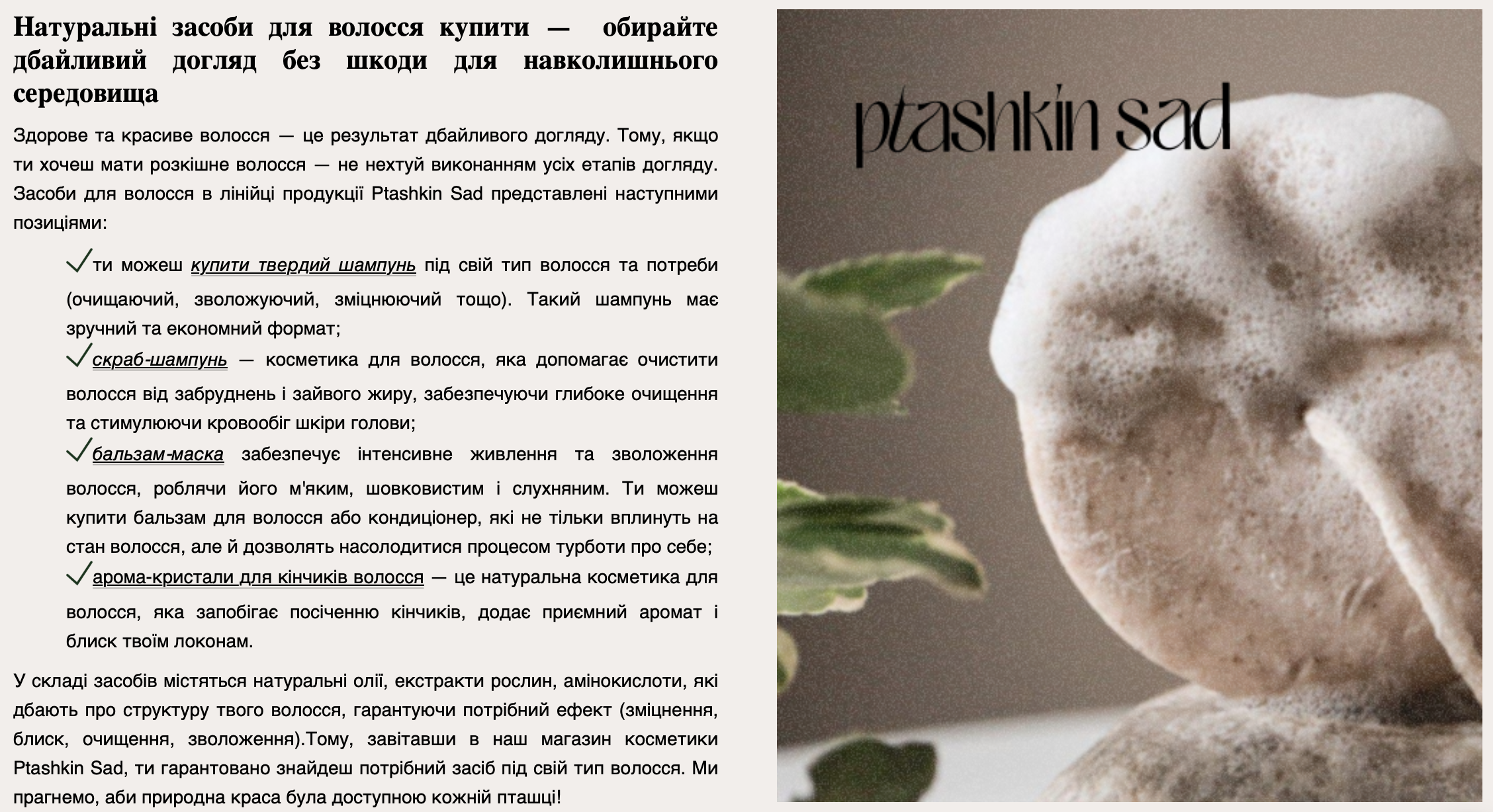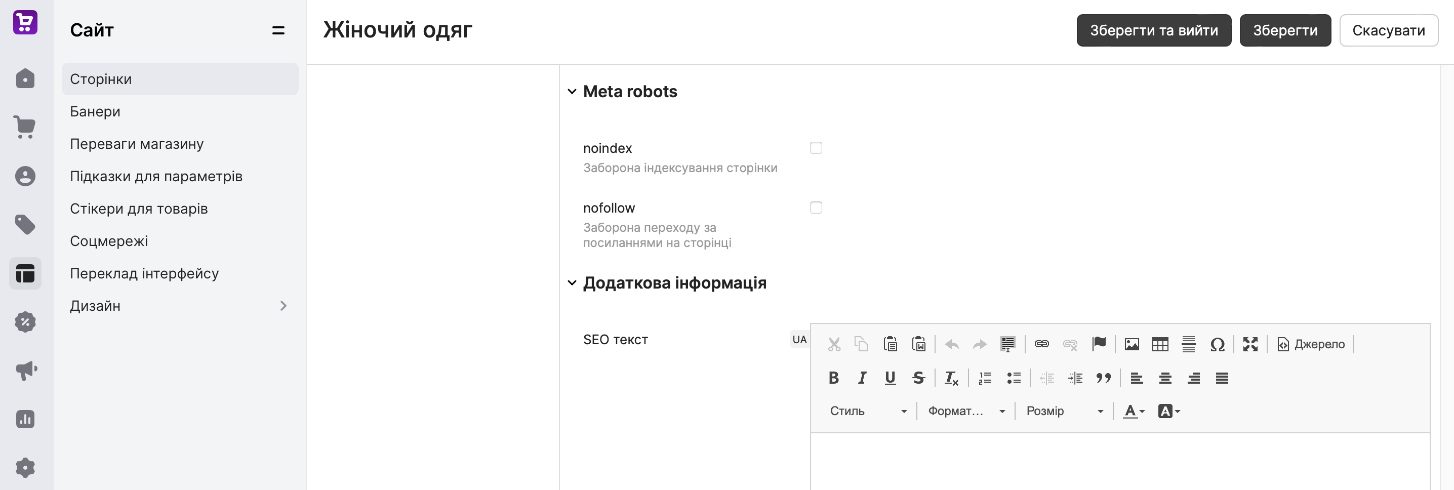 URL желательно делать короткими. Варианты страниц с параметрами не индексируйте: ставьте canonical на «чистую» версию или noindex (страница должна быть доступна для обхода, не блокируйте ее в robots.txt). Используйте только маленькие буквы и дефисы вместо пробелов. Язык — один и последовательный по всему сайту: если магазин на украинском, не смешивайте английские слова в адресах без необходимости.