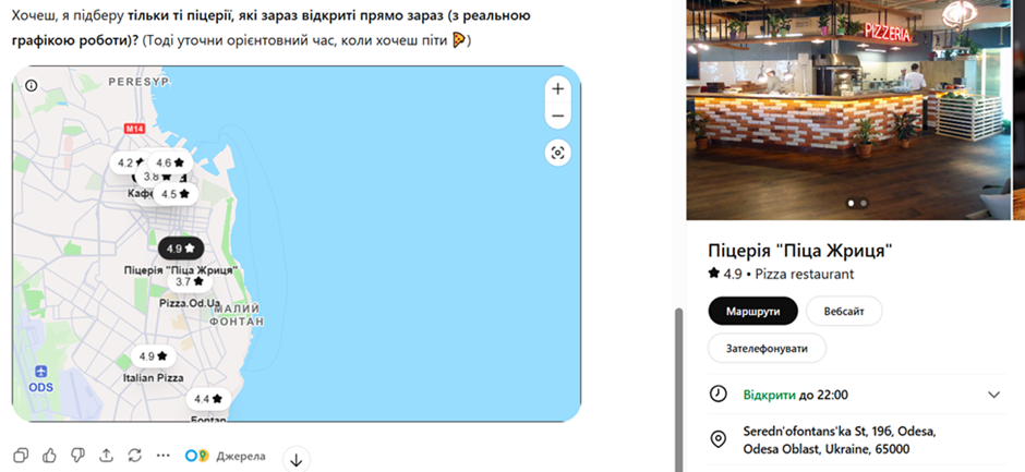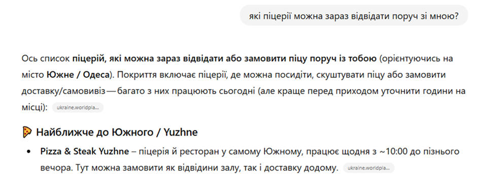 Например, если пользователь спросит о каких-то заведениях, которые находятся рядом с ним, ChatGPT будет ориентироваться на внутренние данные о местоположении пользователя, информацию из Google Maps и данные из других авторитетных источников.
