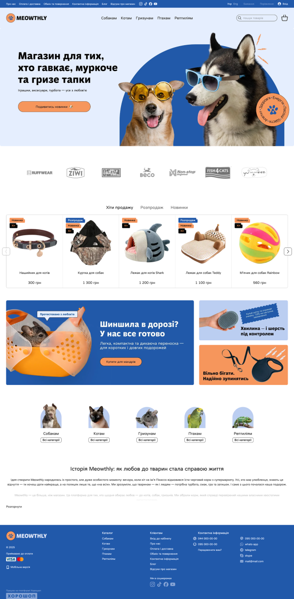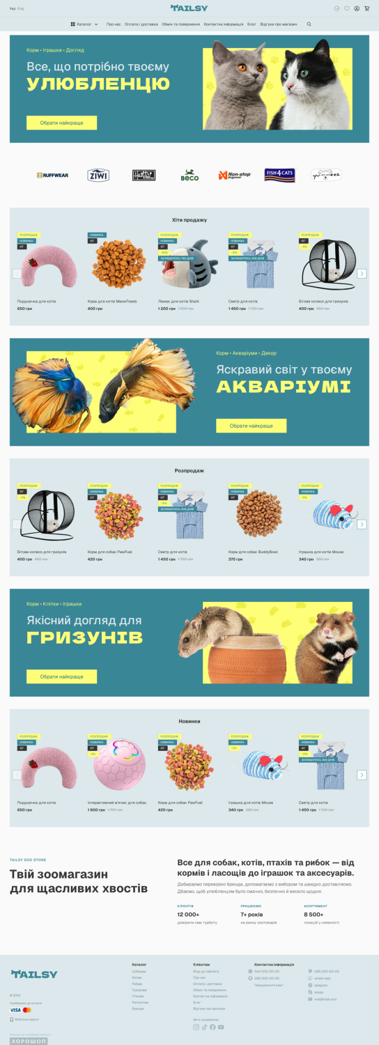 Для дизайна интернет-магазина зоотоваров чаще всего используются насыщенные цвета и тематические графические элементы. Особую роль играют фильтры, которые позволят покупателю выбрать товары именно для своего питомца.
