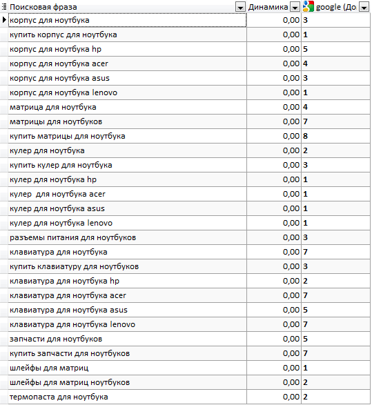 Другим етапом роботи в просуванні інтернет-магазину комплектуючих для ноутбуків і ПК було створення додаткових сторінок (підкатегорій) сайту на основі індексованих фільтрів. Це дозволило отримати цілий ряд сторінок, які ми оптимізували під СЧ- і НЧ-запити. При цьому, на ці сторінки практично не нарощували зовнішні посилання, адже за більшістю запитів сайт дуже швидко увійшов до топу пошукової видачі Google.
