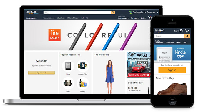 Окрему мобільну версію використовує більшість великих світових і українських інтернет-магазинів: Amazon, Aliexpress, Asos, Zappos, Ikea, Rozetka, Fotos тощо.