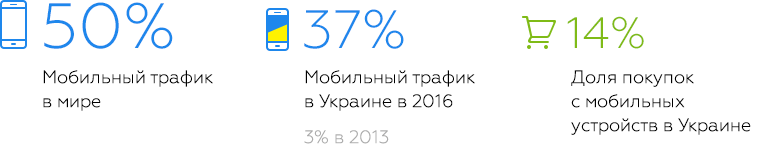 Ще в 2013 році в Україні було 3% мобільного трафіку. Але впровадження 3G і активне використання смартфонів і планшетів призвело до того, що зараз, згідно з інформацією Google, частка мобільного трафіку в Україні становить 37%. А згідно з дослідженням WayForPay, близько 14% онлайн-замовлень здійснюються з мобільних пристроїв. І ці цифри постійно збільшуються. Більше 50% світового трафіку є мобільним, і в деяких розвинених країнах понад 50% замовлень здійснюються з мобільних пристроїв.