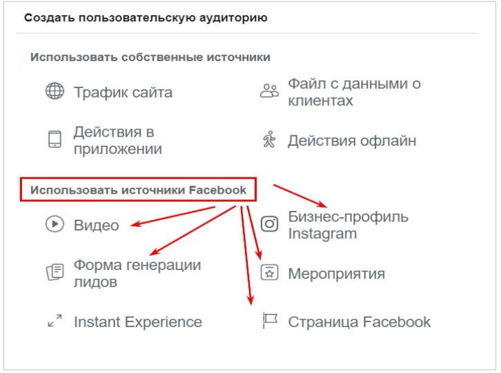 Деякі формати реклами у Фейсбуці дозволяють формувати аудиторії за допомогою внутрішніх алгоритмів Facebook, без участі Pixel. Для використання реклами в Facebook необов'язково використовувати інтернет-магазин як посадкову сторінку. Якщо у вас є сторінка Facebook, сторінка заходу, відео, Instagram або лід-форма, ви вже можете збирати аудиторії за різними параметрами.