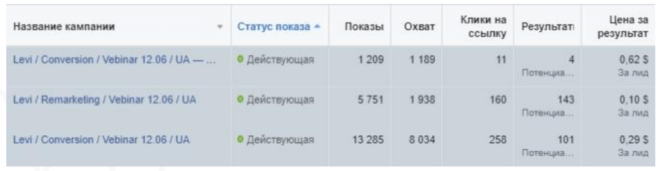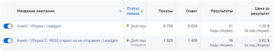 Результати: обробили аудиторію та отримали лід по 0,62 $. Навіть 5 $ — це дуже хороша ціна за лід у цій ніші. Крім того, ремаркетингові кампанії допомогли додатково отримати ще 16 лідів із запущеної лід-форми.