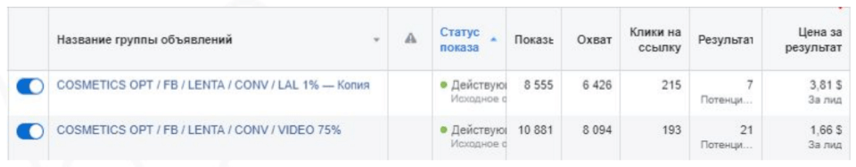 Результати: Вартість ліда — 1,66 $ в оптовій ніші і 3,81 $ з аудиторії Look A Like. Для B2B-сегмента це дуже непоганий результат.