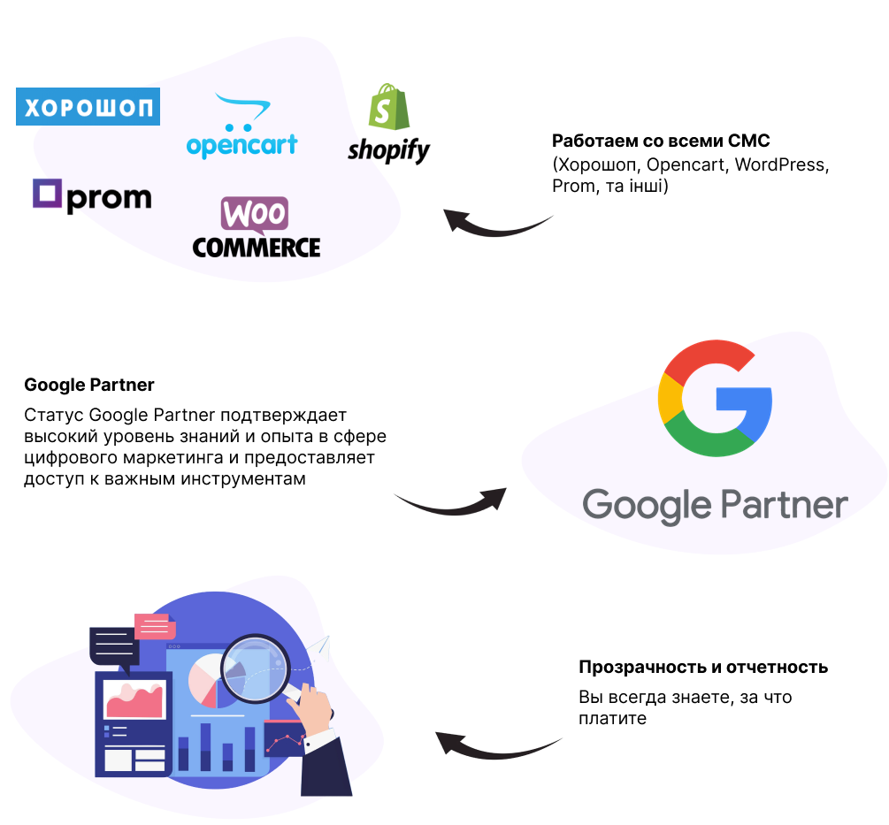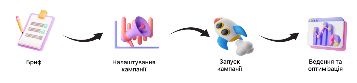 Ми зацікавлені у вашому успіху та прибутковості, оскільки наша мета — довгострокове співробітництво та щомісячне ведення вашої реклами, щоб ваш бізнес стабільно ріс і розвивався.